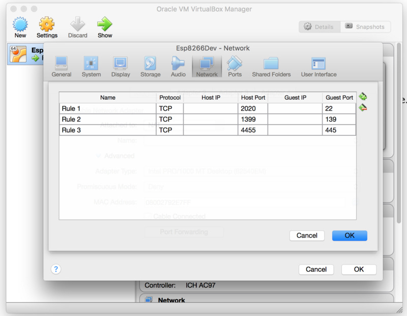 (Optional) Enable port forwarding. In order to SSH directly into your virtual machine, you need to enable port forwarding. For example, to map the port 2222 on your host machine to the port 22 of your virtual machine.